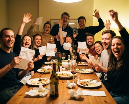 Hannah S. “My partner and I hosted together and haven’t laughed this hard in ages. We thought we’d team up… NOPE. Betrayal. Suspicion. Dramatic gasps. 100% recommend.”